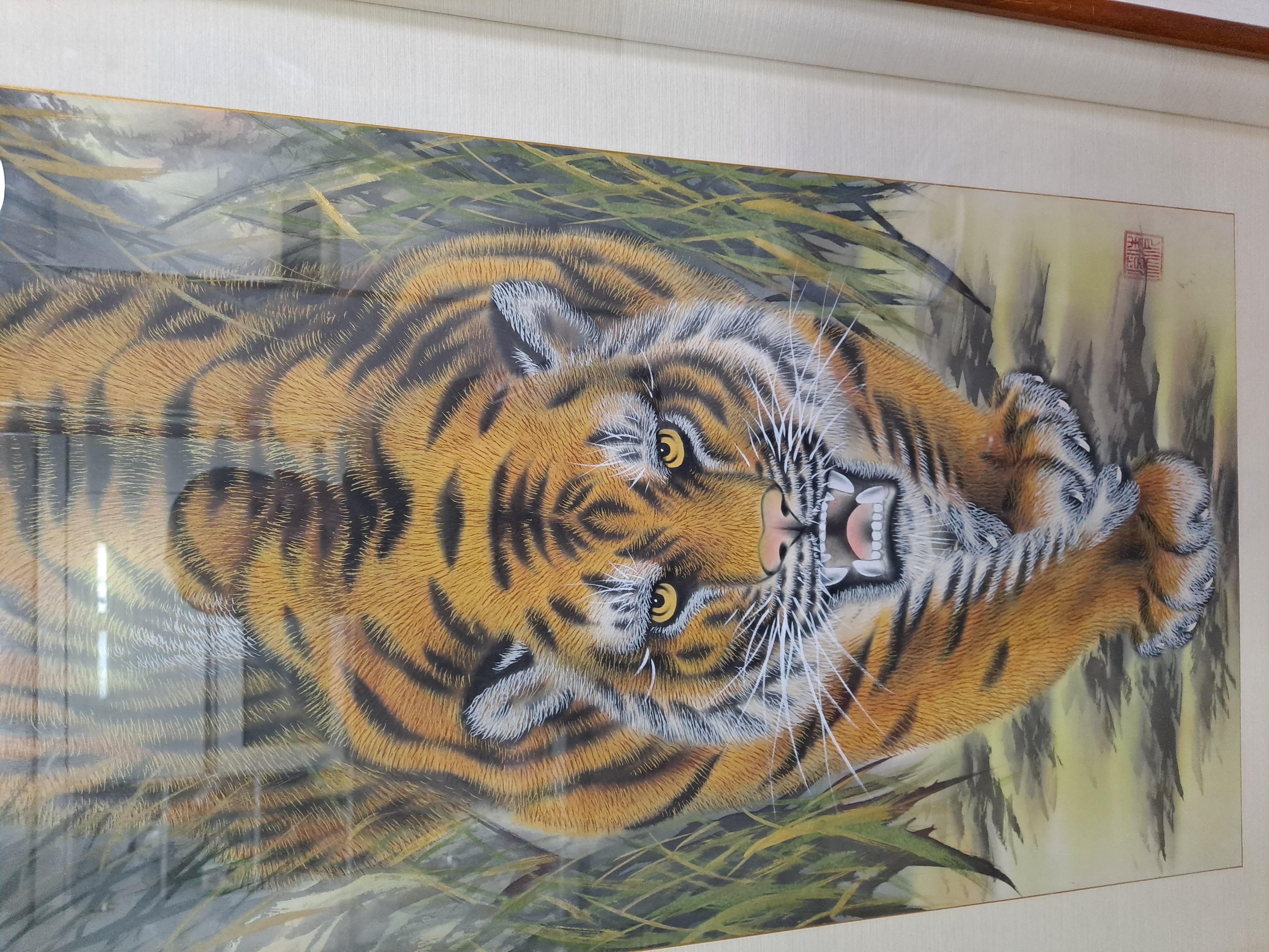 현시점에서 호랑이 그림은 눈이 부리부리한게 힘도 솟고 털이 주뼛주뼛하게 뻣어 호랑이가 살아 있는듯 빛에 의해 보이는 각도에 따라 숲에서 걸어 다니는 듯해 생동감도 있고 힘도 얻고 하는 사업도 잘돼 여러분들에게도 큰 용기와 희망을 주고자 올리게 됐습니다. 여러분들도 다같이 힘내어 좋은일들만 가득하시길 바랍니다. 감사합니다. |