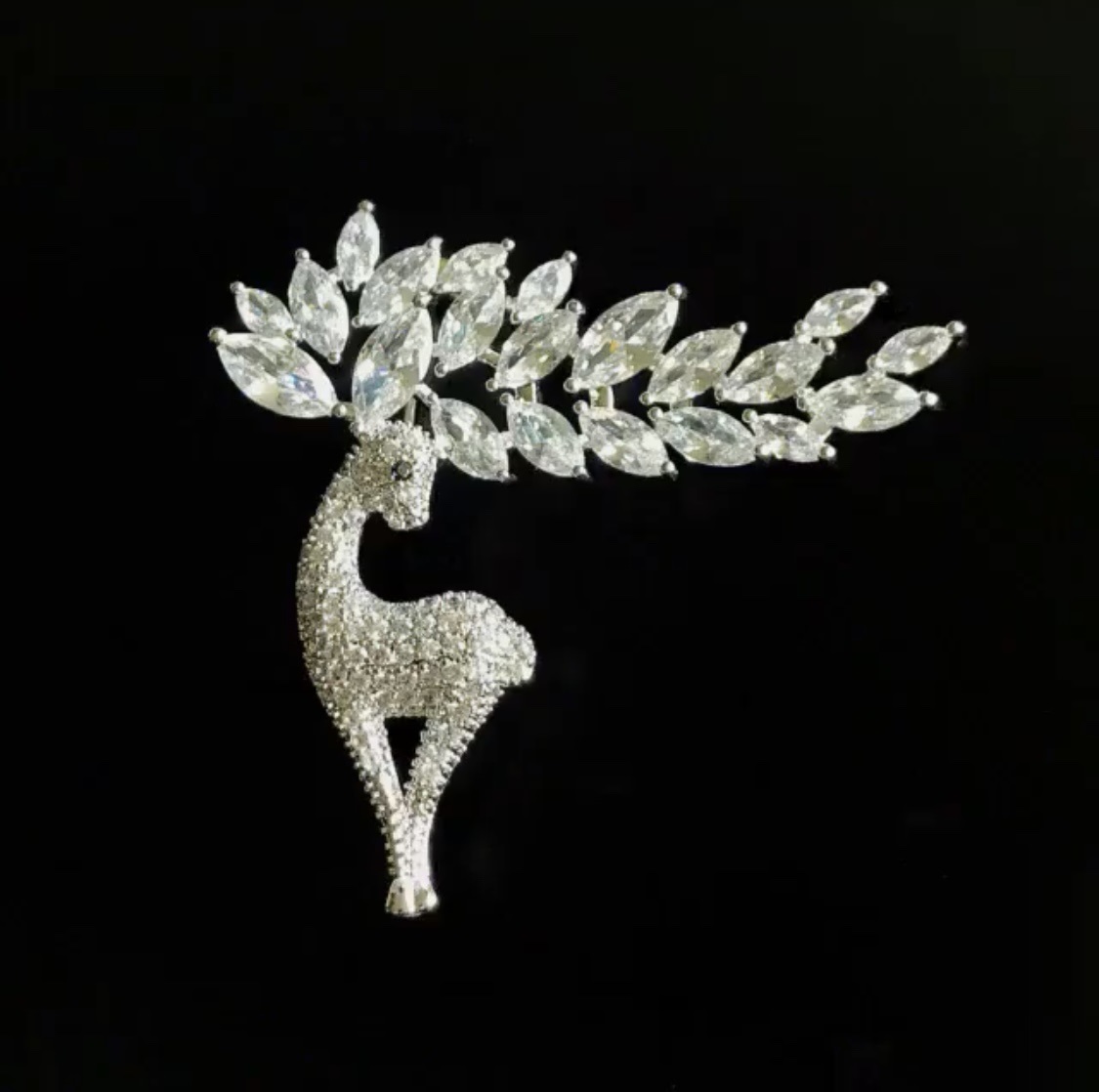 크리스탈로 뿔을 장식한 사슴 브로치