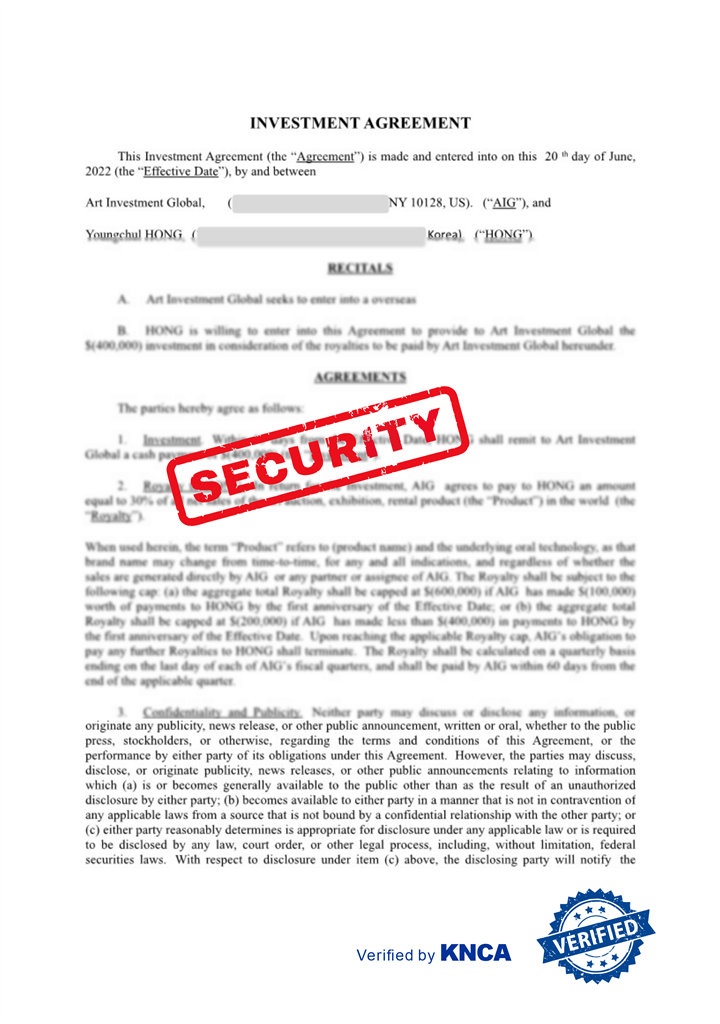AIG(Art Investment Global) Agreement (계약서 검증)