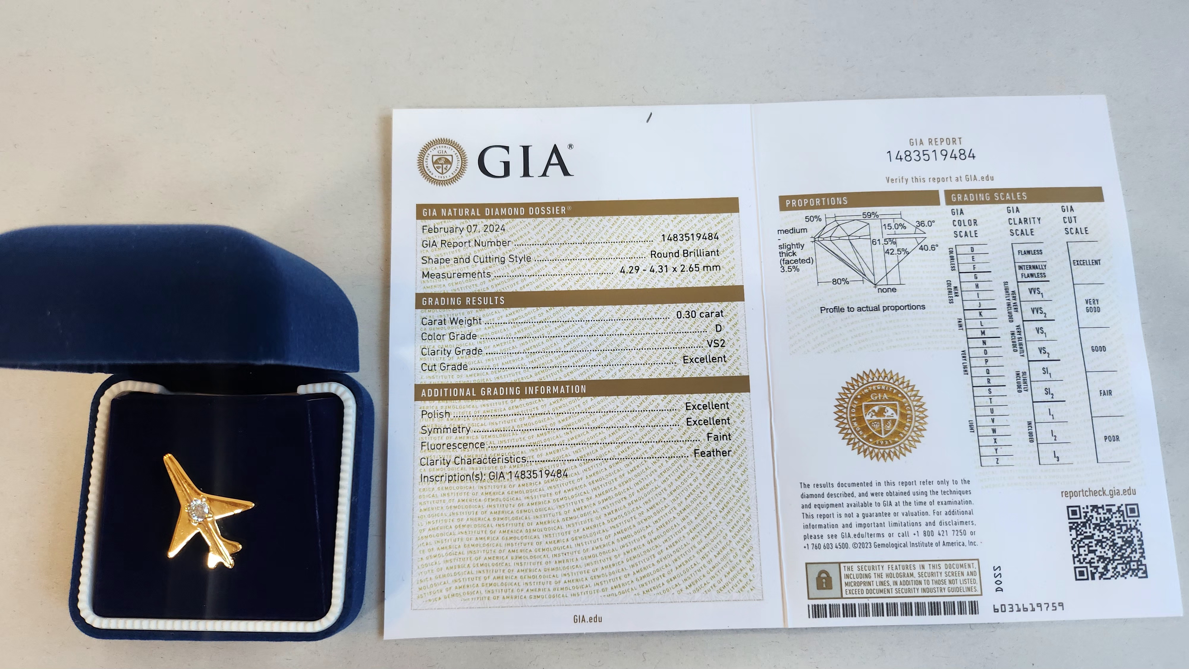 | 특성 및 사양 | 기부 번호:K00001 GIA Report Number 1483519484 |