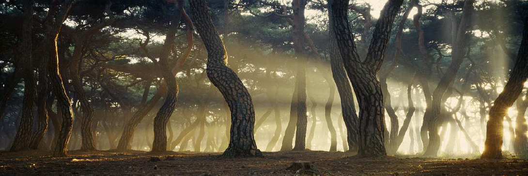 이는 ND필터를 사용하여 무려 2시간의 노출을 준 덕분이다.그의 작업은 무엇보다 소나무 줄기의 구불구불한 형태와 다양한 직선과 곡선의 반복과 교차, 변화와 리듬의 조화로 조형미를 구축하는 것이다. 마치 용트림을 하는 듯 한 독특한 형상과 한국 소나무의 특징인 육각형 비늘 모양의 나무껍질의 세부 묘사는