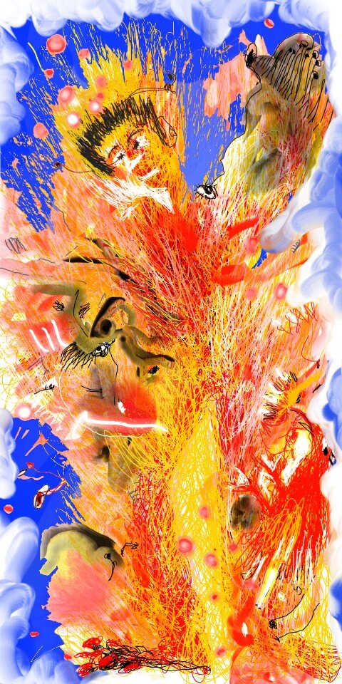 작가의 작품은 보는 사람에 따라 다르게 해석된다. 감동을 하기도, 두려움을 느끼기도 한다. 누군가는 엉켜있는 붉은 선 속에서 사람의 얼굴이 보인다고도 한다.